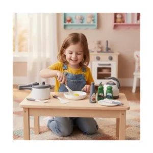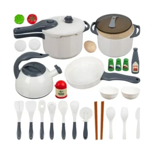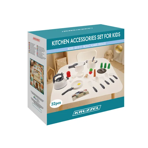 A 32 darabos Kruzzel gyerek konyhai edény- és kiegészítő szett ideális eszköz arra, hogy a kicsik biztonságos keretek között gyakorolják a főzés és a tálalás lépéseit. A játék közben fejlődik a finommotorika, a képzelőerő és a társas készségek, miközben a gyerekek újraalkotják a mindennapi konyhai rituálékat.