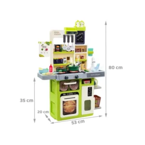 Az interaktív konyha fényekkel, hangokkal, gőzzel és csapból folyó vízzel tökéletes játék a kis szakácsok számára, valósághű konyhai élményt nyújtva.