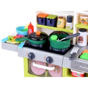 A konyhával való játék különleges szórakozást nyújt olyan funkcióknak köszönhetően, mint a világító főzőlapok, főzési hangok és a fazekakból felszálló gőz hatása, amely a valódi főzést imitálja. A gyerekek „elmosogathatnak” a vízcsap segítségével, ami még hitelesebbé teszi az élményt.