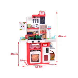 Sokfunkciós, interaktív konyha visszafogott, pasztell színekben minden gyermek számára kötelező darab! Számos nyitható és mozgatható elemmel rendelkezik, amelyek kielégítik a gyermek kíváncsiságát, elterelve a figyelmüket a valódi, otthoni konyháról.