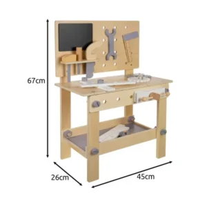 Felkelti a gyerekek érdeklődését – a fa műhely nemcsak játék, hanem oktatási eszköz is, amely fejleszti a koordinációt, a képzelőerőt és a kézügyességet, minden gyerek talál benne valami érdekeset, a satu forgatásától a csavarok meghúzásáig