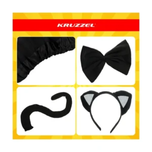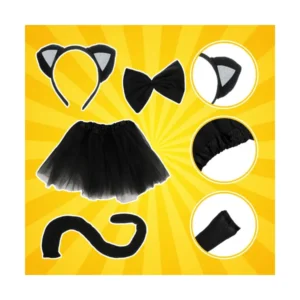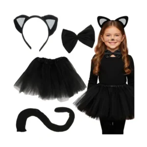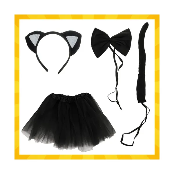 • 4 részes szett: tüll szoknya, macskafül fejpánt, farok és csokornyakkendő.