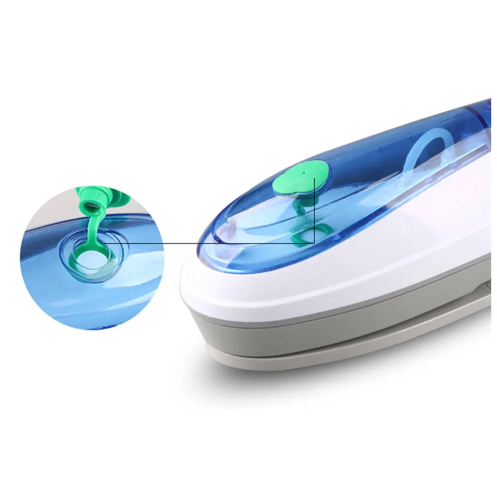 Utazó ruhagőzölő kefe két cserélhető tartozékfejjel, 800W – 1200W, 220 / 240 V, 30cm x 7cm x 10cm, kék-fehér