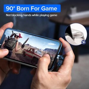 A szögletes csatlakozó ideális megoldás játékhoz vagy filmnézéshez a telefon töltése közben. Továbbá a csatlakozó kialakítása lehetővé teszi a forgatást két síkban.