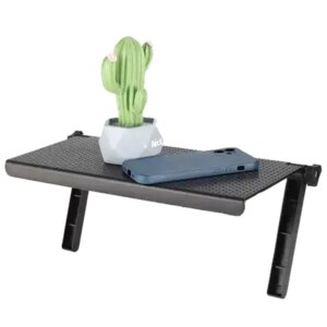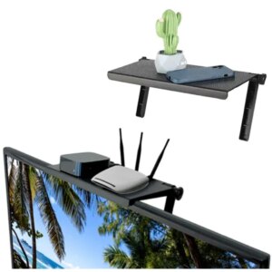 Praktikus felső polc, amely pillanatok alatt a TV vagy monitor keretére rögzíthető, így értékes helyet szabadít fel az asztalon a távirányító, játékkiegészítők vagy dísztárgyak számára. Csúszásgátló felülete stabilan tartja a tárgyakat, a dönthető lábak pedig biztos illeszkedést és rezgésmentes használatot garantálnak.