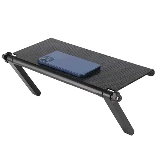 Használatához hajtsd ki a két támasztólábat, igazítsd a kívánt szögbe, és finoman nyomd a polcot a keret tetejére. A stabil tartásnak köszönhetően tárgyaid biztonságban maradnak, a le- és felszerelés pedig bármikor nyom nélkül megismételhető.