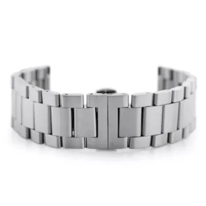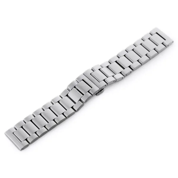 Rozsdamentes acélból készült, elegáns ezüst karkötő, amely 24 mm-es befoglaló szélességével számos sport- és klasszikus óramodellhez illik. A rejtett pillangócsatt és a könnyen kivehető szemek gyors, pontos hosszbeállítást biztosítanak a kényelmes viselethez.