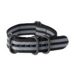 Változtasd meg órád megjelenését ezzel a NATO stílusú, fekete-szürke nejlon óraszíjjal! A katonai eredetű heveder strapabíró, mégis kényelmes viselet, víz- és izzadságálló, így sporthoz és mindennapi használatra is ideális. A matt fekete rozsdamentes acél csat biztonságosan rögzíti a szíjat, a több rögzítési pont pedig pontos illeszkedést tesz lehetővé 16-20 cm csuklóméretig.