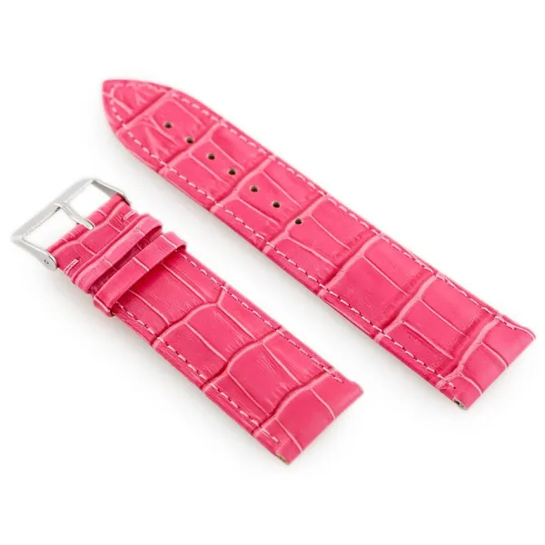 Rózsaszín bőrszíj karórához, 26 mm, ezüst csattal