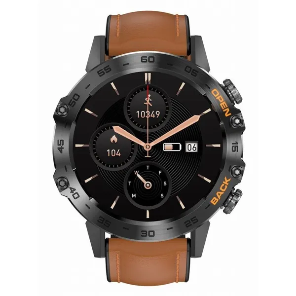 A 400 mAh-ás akkumulátor akár több napos üzemidőt biztosít, az IP67 fröccsenésálló ház pedig gondoskodik arról, hogy az órád ne maradjon le egyetlen kalandról sem. A barna-fekete bőr/gumi szíj és a nikkelmentes fémötvözet tok elegáns, ugyanakkor bőrbarát viseletet kínál.