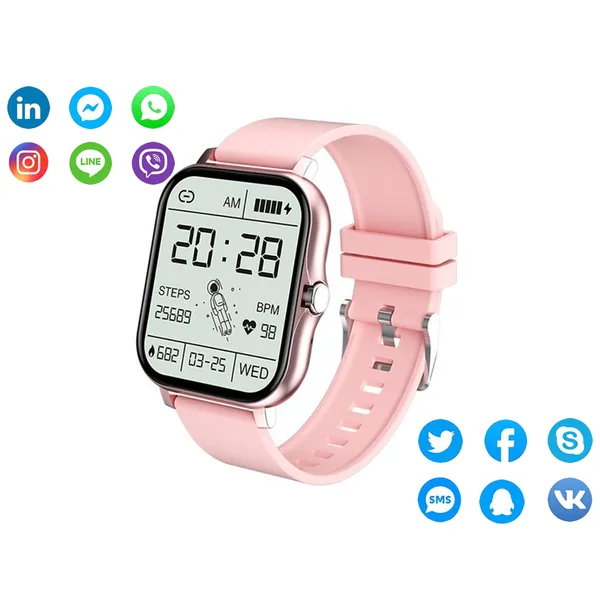 Unisex sport okosóra gumiszíjjal, Bluetooth hívás, rózsaszín