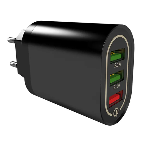 Gyors töltő hálózati adapter 18w qc 3.0 3 usb fekete