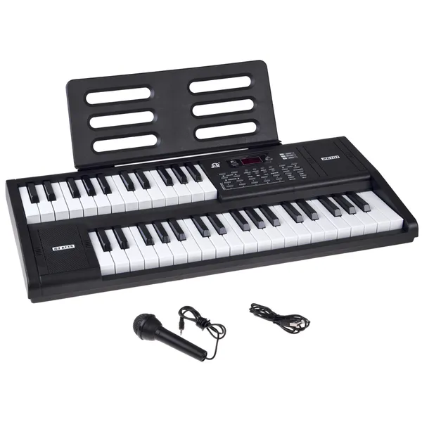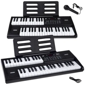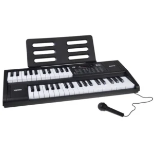 • Mikrofon és kottatartó a csomagban – azonnal kezdheted a házi koncerteket.