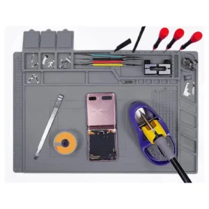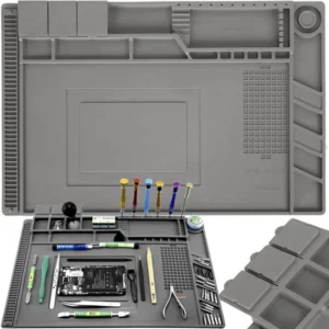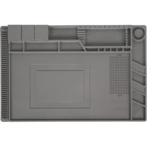 A szerviz alátét elengedhetetlen kiegészítő minden elektronikai szerviz számára, a kiváló minőségű szilikonból készült alátét nemcsak megvédi a felületet karcolásoktól és leeső szerszámoktól, hanem megszünteti a statikus elektromosság felhalmozódásának kockázatát is. Szerszámaid biztonságban lesznek, és munkád hatékonyabbá válik.