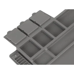 A szilikon szerkezet megkönnyíti az alátét tisztán tartását. Könnyen lemosható bármilyen anyag vagy por, biztosítva, hogy szerszámaid mindig tiszta és biztonságos felületen dolgozzanak.