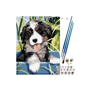Lépj be a művészet világába ezzel a számok szerinti festési készlettel! 🐶 Az akril festékek segítségével, amelyek már benne vannak a csomagban, érzékelhetően nő az önbizalmad, ahogy a kép fejlődik.