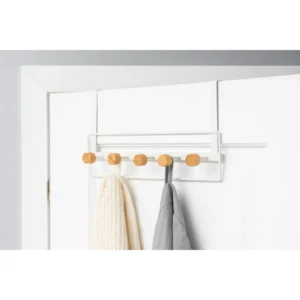 Kézi szerszám nélkül felakasztható, 5 bambusz kampós fém fogas, amely az ajtó belső oldalát használja ki, így helyet szabadít fel és rendezettséget teremt.