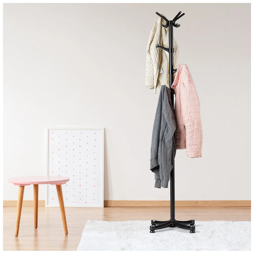 Álló ruhafogas 14 akasztóval, fekete, fém, 180×48 cm