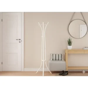 Hozzon létre rendezett, stílusos előszobát a Hemede szabadon álló ruhafogassal! Minimalista formája és fehér porszórt felülete bármely enteriőrbe illeszkedik, miközben masszív acélváza megbízhatóan tartja kabátjait, sálait és táskáit.
