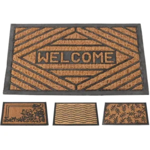 A lábtörlő gumi kerettel és természetes kókuszrost betéttel készült, így egyszerre tartós és környezetbarát megoldás a bejárat tisztán tartására. 40×60 cm-es méretével lakások, irodák és üzlethelyiségek elé is ideális. A csomag 12 darab terméket tartalmaz, gazdaságos választás többlakásos házak vagy projektek számára.