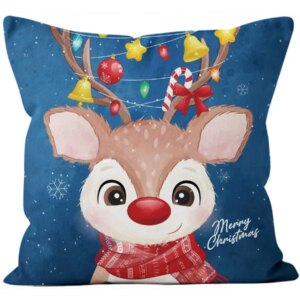 Dekoratív párnahuzat karácsonyi motívummal. Standard méretű párnahuzat. Puha és kellemes tapintású szövet. Tökéletes karácsonyi dekoráció rénszarvas motívummal.