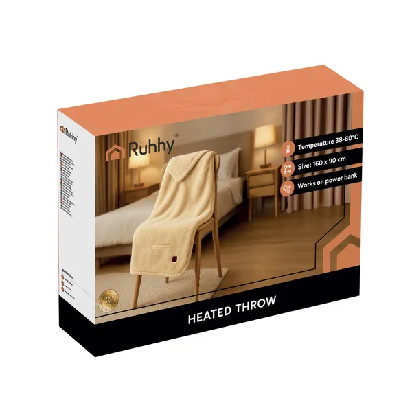 • Ruhhy elektromos melegítő takaró USB powerbankkal, 160×90 cm, bézs, 3 hőfok