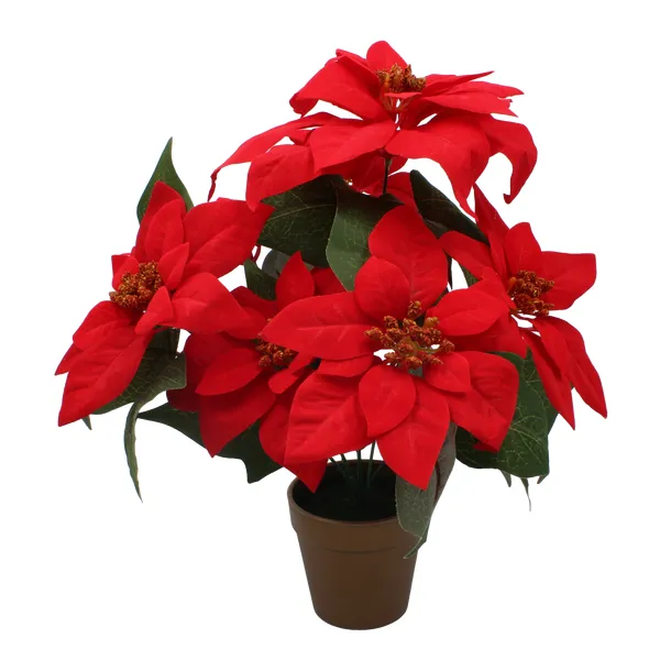 Az örökzöld karácsonyi csillag a téli időszak ikonikus dísze – ezzel a 49 cm magas, piros szirmú mű Poinsettiával bármikor megteremtheted az ünnepi hangulatot, anélkül hogy a növény ápolásával bajlódnál. A virágot elegáns, fényes aranyszínű kaspó teszi teljessé, amely azonnal luxushatást kölcsönöz bármely komódnak, étkezőasztalnak vagy üzletkirakatnak.
