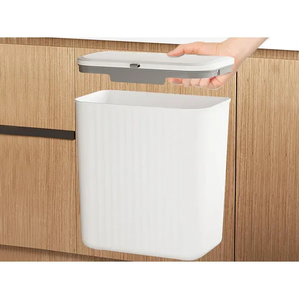 Fehér fedeles, ajtóra akasztható konyhai szemetes 9 l