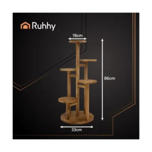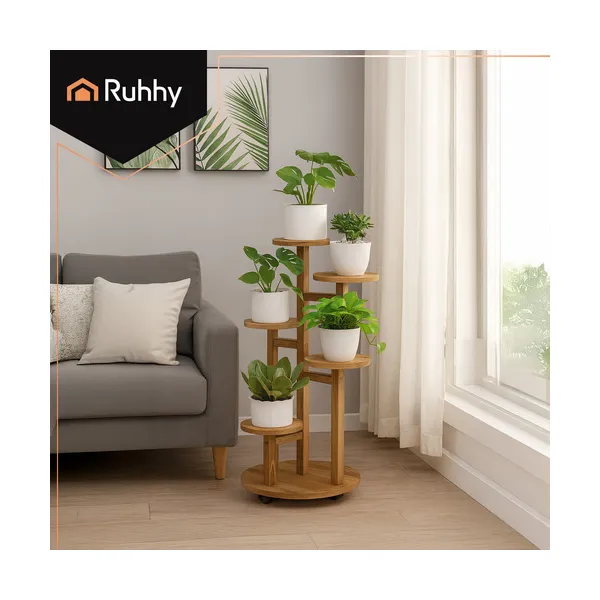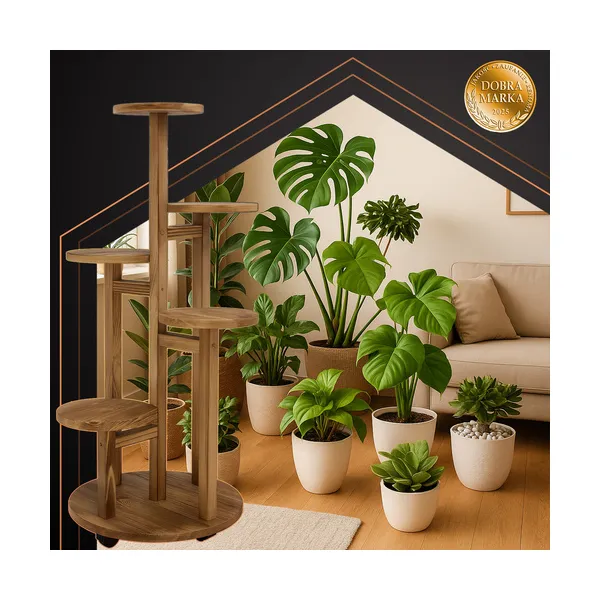 A RUHHY többszintes, álló virágtartó természetes fenyőfából készült, és akár hét cserepes növénynek biztosít elegáns, helytakarékos bemutatóteret a nappaliban, az erkélyen vagy a teraszon. A 86 cm magas állvány 6 eltérő magasságú polca lépcsőzetes kompozíciót alkot, így minden növény megkapja a szükséges fényt.