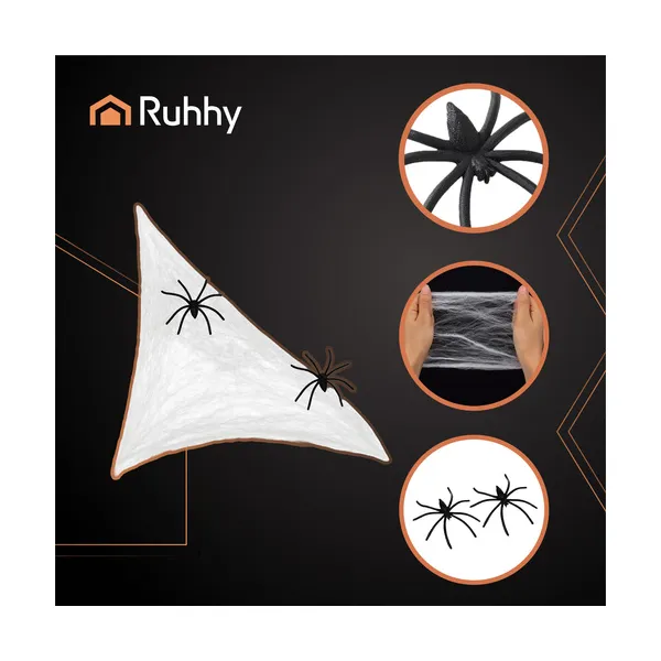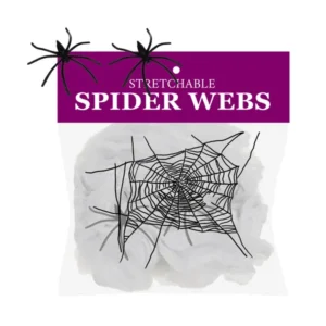 Könnyedén felhelyezhető, nyújtható pókháló 2 fekete pókkal, amely akár 2,5 m²-t is befed, hogy pillanatok alatt igazi Halloween-hangulatot varázsolj otthonodba.