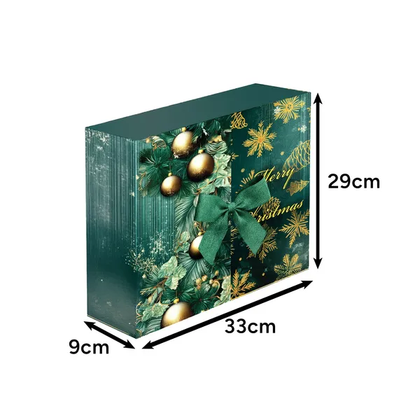 A 2025-ös férfi adventi kalendárium 24 gondosan válogatott ajándékkal varázsolja ünnepivé a decemberi reggeleket. Vastag, laminált kartonból készült, elegáns zöld-arany mintával és szaténszalaggal, így önmagában is látványos dekoráció és ajándék.