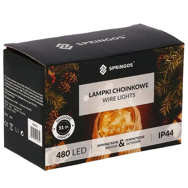 A 48 méteres, meleg fehér fényű, 480 LED-es füzér 8 programmal és távirányítóval varázsol ünnepi fényt bármely beltéri vagy kültéri dekorációhoz, miközben csupán 3,6 W-ot fogyaszt és IP44 védelemmel bír. Hajlékony rézdrótja könnyen formázható, a diódák meghibásodása pedig nem oltja ki a teljes sort.