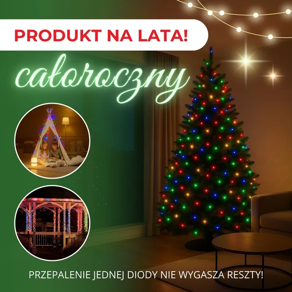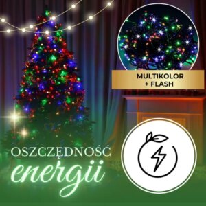 300 élénk multikolor LED, villogó effekttel, 15 m hosszan világítva hoz ünnepi csillogást bármely térbe, miközben mindössze 4,5 W-ot fogyaszt. IP44 védelmének és láncolható kialakításának köszönhetően kültéri vagy beltéri dekorációként is biztonságos és rugalmas megoldás.