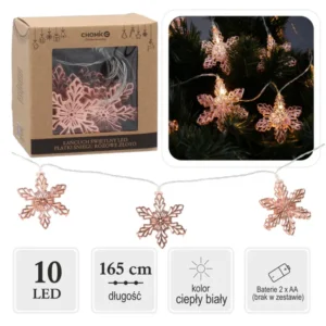 LED hópehely fényfüzér, 10 LED, rózsaarany, meleg fehér, 1,65 m