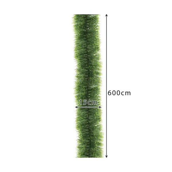 Karácsonyfafüzér zöld, 6 m hosszú, 15 cm vastag, kétárnyalatú műfenyő