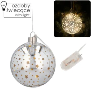 Az ünnepi dekoráció középpontja ez az elegáns, 12 cm átmérőjű, ezüst színű üveg karácsonyi gömb, amely beépített meleg fehér LED-ekkel és csillagmintás kivágásokkal varázsol meghitt fényt otthonodba.