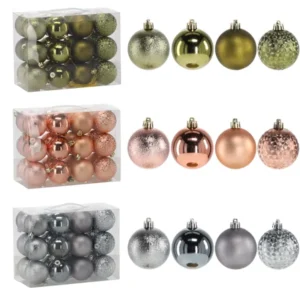 A 24 darabos, 6 cm-es olíva, réz és grafitszürke gömbválogatással percek alatt egységes, mégis izgalmas karácsonyfadekort hozhatsz létre. Könnyű, törhetetlen anyaga miatt gyerekek és háziállatok mellett is biztonságos.