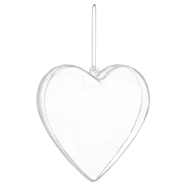 A törhetetlen, 10 cm-es akril szív révén percek alatt alkothatsz személyre szabott karácsonyi, esküvői vagy lakásdekorációt. A könnyen szétszedhető, teljesen átlátszó forma belsejébe csillámpor, minifényfüzér vagy apró ajándék rejthető, az ajándék ezüst akasztózsinór pedig azonnali felhelyezést biztosít a fára vagy ablakba.