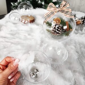 A törhetetlen, átlátszó akril gömböt kedved szerint töltheted meg konfettivel, műhóval vagy apró ajándékkal, így teljesen személyre szabott karácsonyi díszt alkothatsz. Az ezüst akasztózsinórnak köszönhetően az elkészült dekorációt azonnal felteheted a fára, koszorúra vagy ajtódíszre.