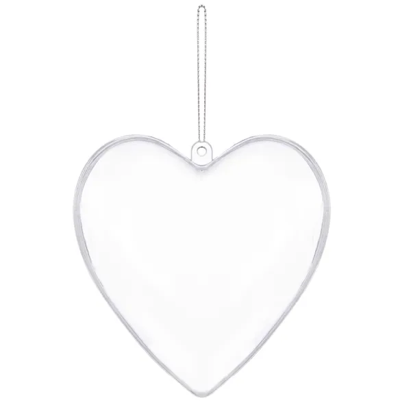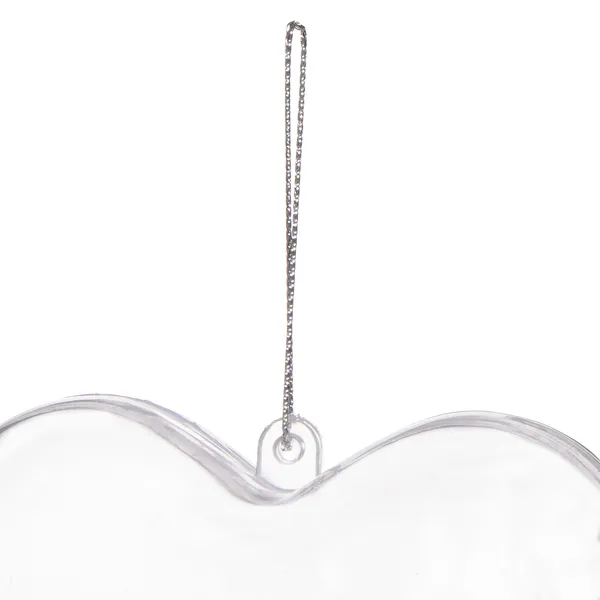 • Átlátszó akril szív díszgömb 7 cm ezüst akasztóval, törhetetlen
