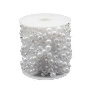Fehér gyöngyfüzér karácsonyfadísz 8mm 5m