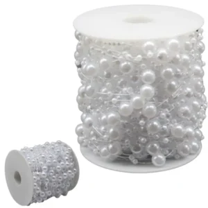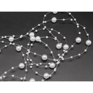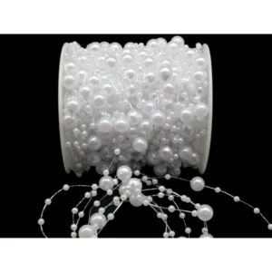 Gyöngyfüzér fehér gyöngyökkel Karácsonyfadísz lánc gyöngyök 8mm tekercs 5m