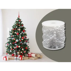 A fehér gyöngyfüzér elegáns dekoráció, amely ideális karácsonyfára vagy más karácsonyi díszítéshez. Finom gyöngyökből áll, amelyek egy 5m hosszú láncra vannak felfűzve, így tökéletes kis és nagy fák díszítésére egyaránt.