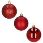 Add ünnepi fényt otthonodnak a klasszikus piros karácsonyfagömb szettel! A 10 cm átmérőjű, tartós műanyagból készült díszek három különböző felületkezeléssel – matt, csillámos és magasfényű – érkeznek, így változatos, de harmonikus összképet biztosítanak. A törésálló kialakításnak köszönhetően nem kell többé aggódnod a leeső díszek miatt, ami különösen előnyös, ha kisgyermek vagy háziállat is van a családban. Minden gömbhöz aranyszínű akasztózsinór tartozik, hogy azonnal a fára, koszorúra vagy asztaldíszre kerülhessen.