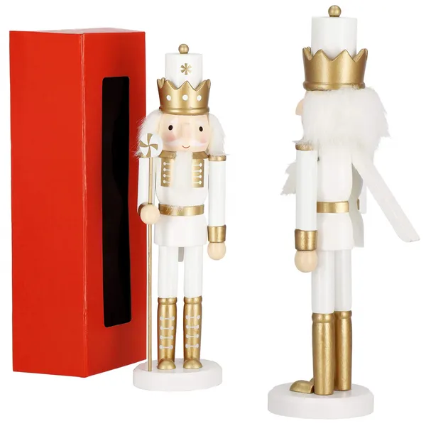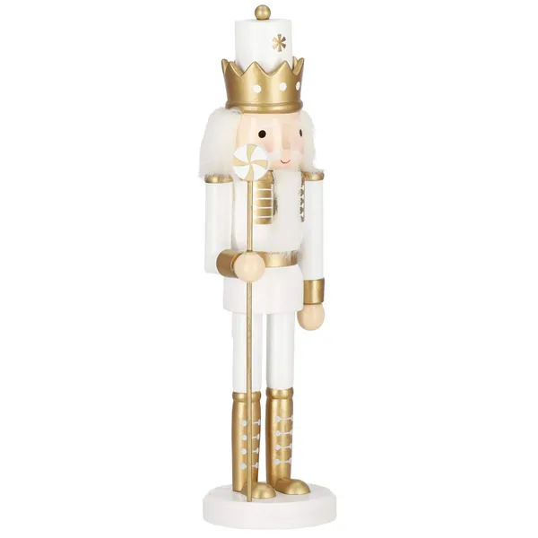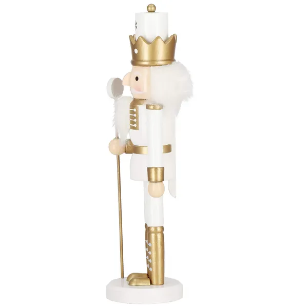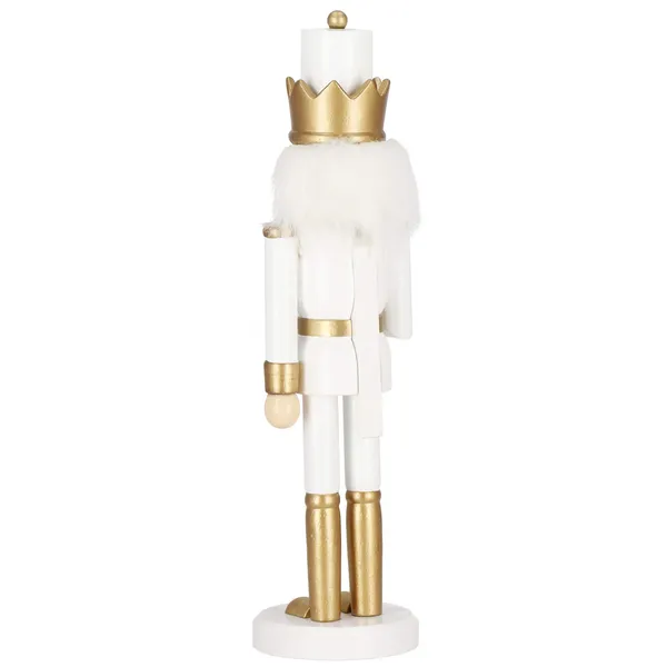 • Karácsonyi diótörő dísz, fa, 30 cm, fehér-arany