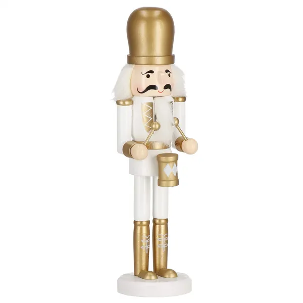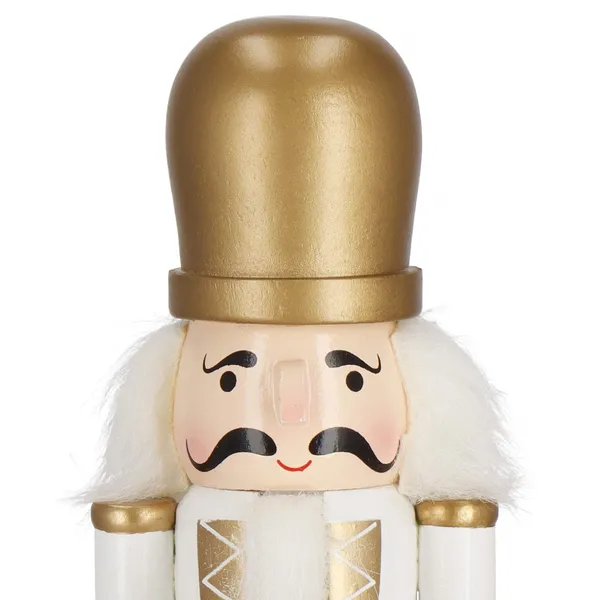 Karácsonyi diótörő dísz, fa, 30 cm, fehér-arany
