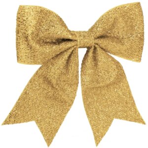 Karácsonyi díszítő masni, arany, 22×20 cm, drótos rögzítéssel