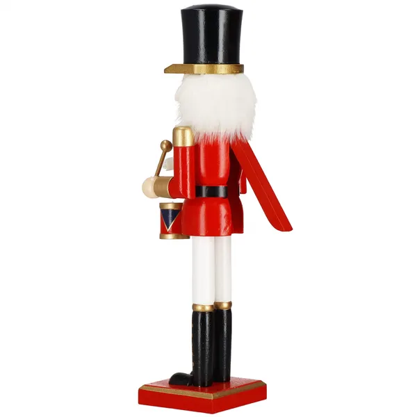 A fából készült, részletgazdag diótörő figurával pillanatok alatt ünnepi hangulatot varázsolhatsz, hiszen 38 cm-es mérete és színpompás dobos dizájnja minden tekintetet magára vonz. Stabil talpa révén biztonságosan elhelyezheted a komódon, ablakpárkányon vagy az ünnepi asztalon, otthonod bármely pontján.