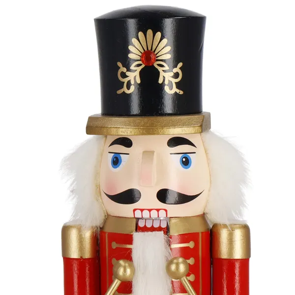 Hozd el otthonodba a klasszikus karácsonyi varázst ezzel a precízen faragott, kézzel festett diótörő figurával! A 38 cm magas, fából készült dekoráció élénk színeivel és a dobot tartó katonával azonnal megragadja a tekintetet, bárhová is helyezed.