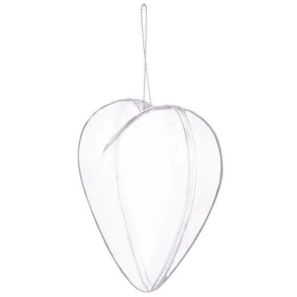 • Átlátszó akril szív díszgömb 7 cm ezüst akasztóval, törhetetlen